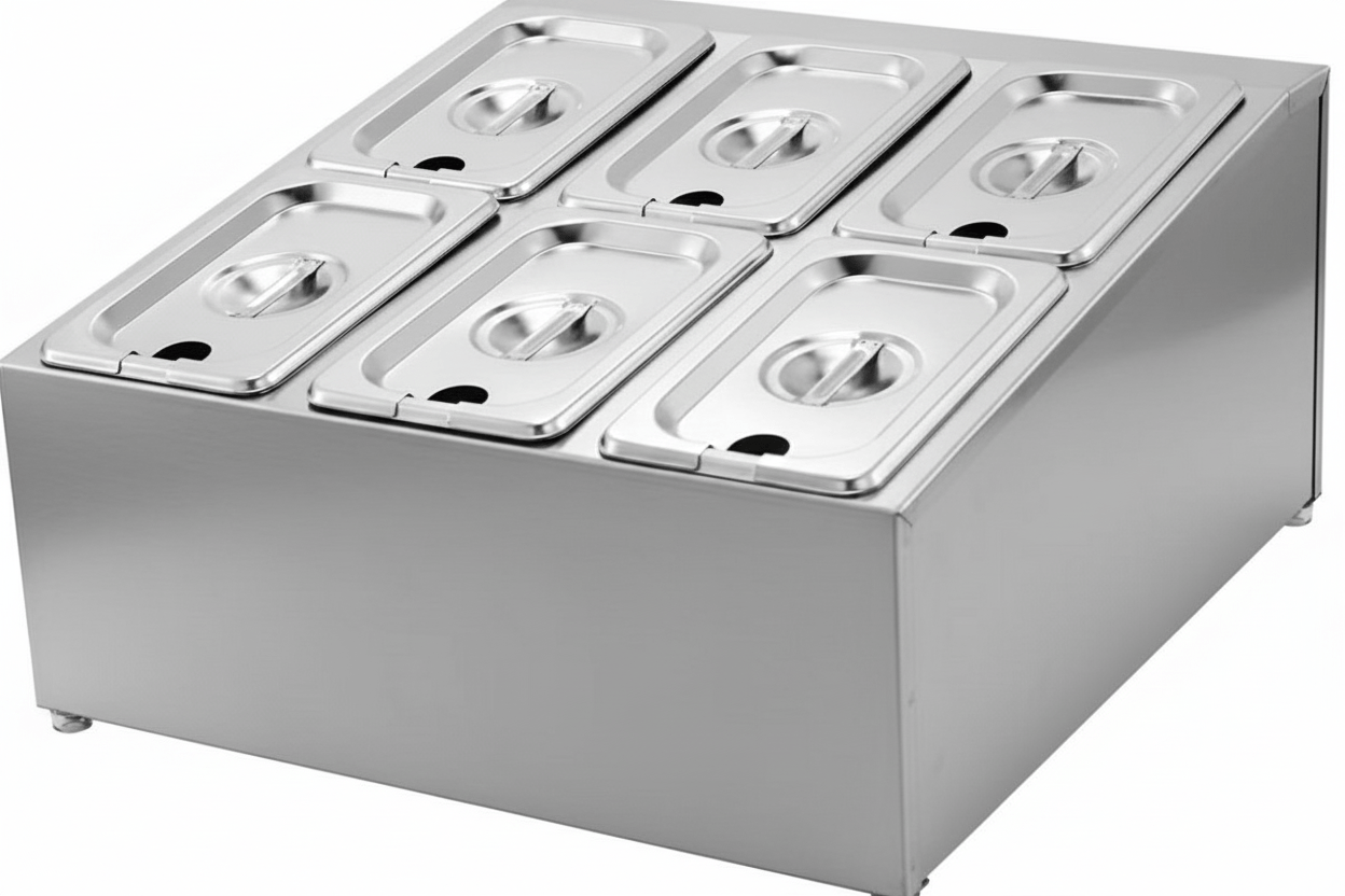 Fabricada em aço inoxidável de alta qualidade, garante durabilidade, fácil higienização e excelente apresentação. Acompanha 6 cubas padrão Gastronorm GN 1/9 com 100 mm de profundidade, perfeitas para armazenar condimentos, molhos, frios, legumes e acompanhamentos.