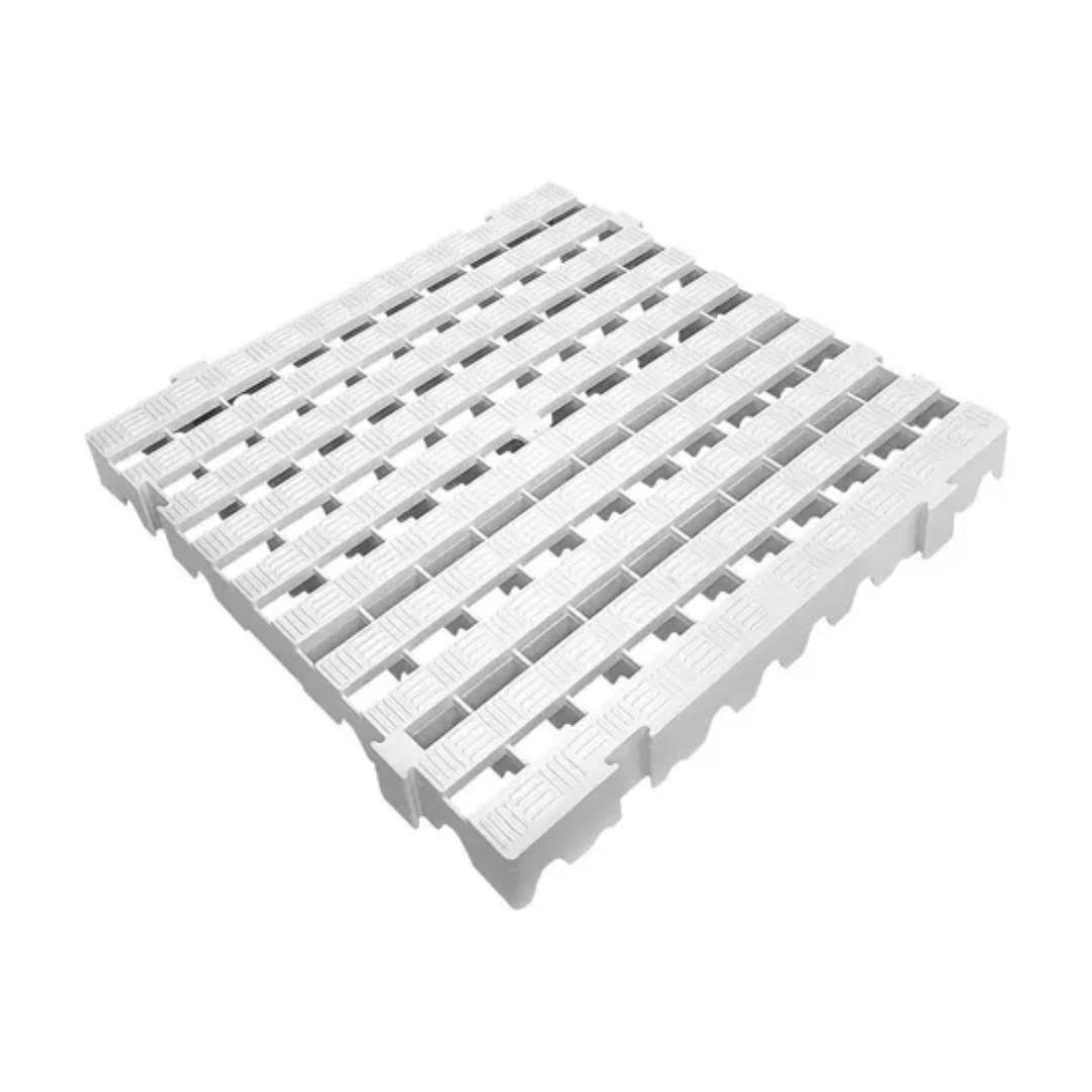 Fabricado em plástico atóxico de alta resistência, suporta peso elevado, é fácil de higienizar e não sofre corrosão. O design modular permite encaixe entre várias peças, possibilitando a formação de superfícies maiores conforme a necessidade.