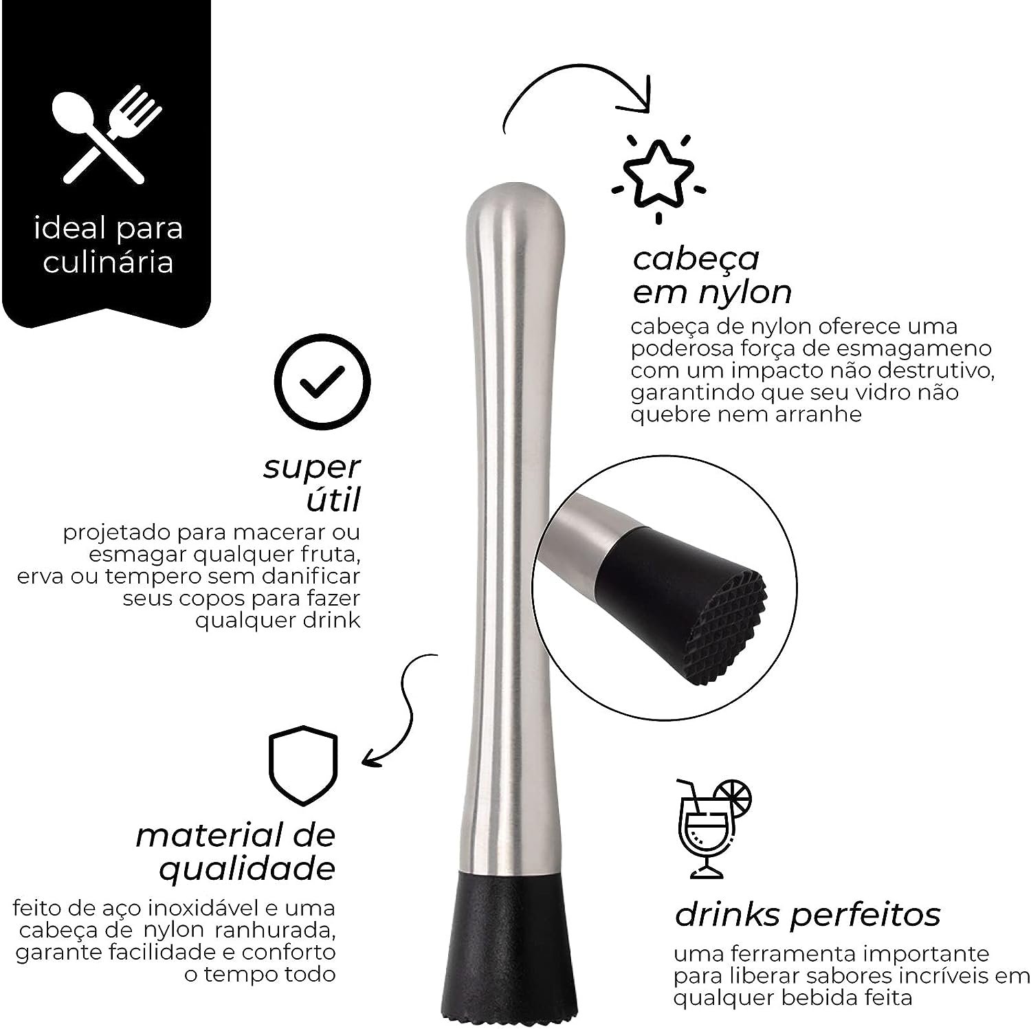 Socador Macerador Em Inox Socador Macerador em Bronze da Mimo Style, é fabricado em materiais de alta qualidade para garantir durabilidade e resistência durante seu uso. Com corpo em aço inox altamente resistente, conta com ponta em polipropileno toda texturizada que o torna ideal para preparar coquetéis, se tornando um item indispensável para completar sua cozinha e embelezar seus ambientes.