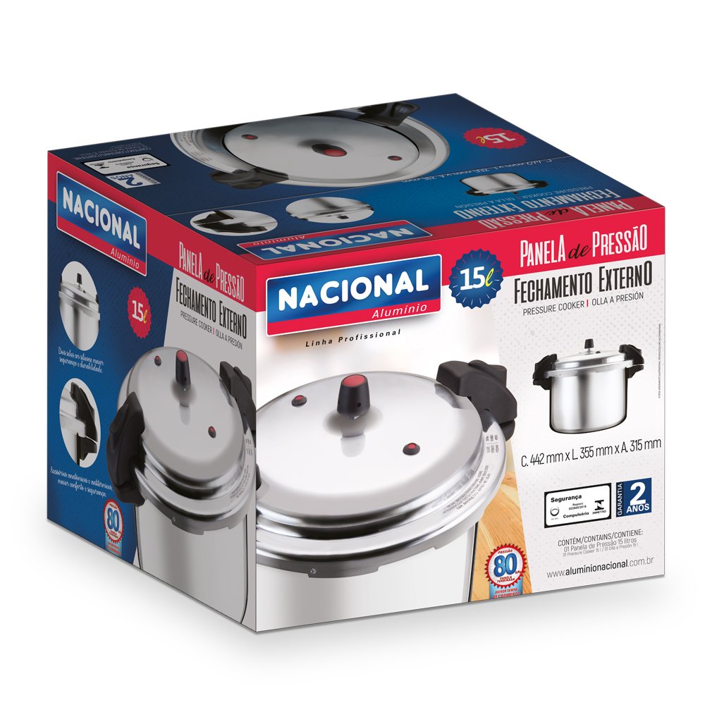 A nova panela de pressão Nacional Original em alumínio polido se renova e mantém seu principal atributo, segurança e mais controle, possui sistema com 3 válvulas de segurança. Abertura segura da tampa, pelo seu exclusivo indicador de pressão, que permite avisar quando pode abrir e fechar a tampa durante seu uso. Sistema de segurança avançado, adicional às válvulas de segurança tradicionais.