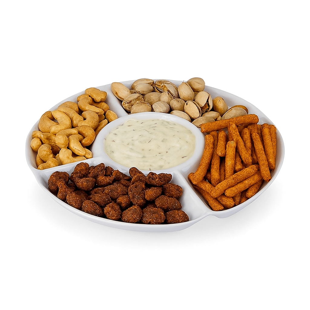 Com 5 cavidades, sirva uma grande variedade de petiscos ao mesmo tempo.